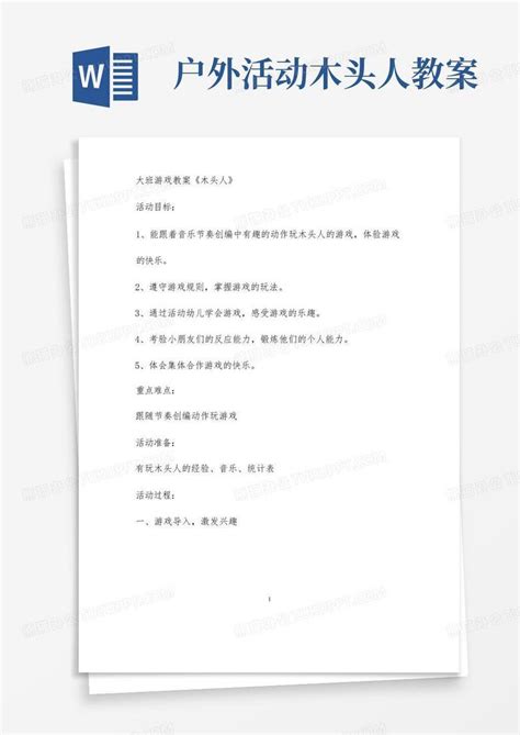 体育游戏木头人教案是一种有趣而有效的体育教学方法,旨在通过模拟真实运动场景,提高学生的体育技能、团队合作能力和身体协调性。下面是一个简单的教案示例,适用于小学或中学的体育课程。