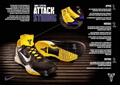 在科比球鞋系列中,耐克不断引入新的科技和设计理念,如Flyknit鞋面、自适应缓震系统等,为球迷们呈现了一场视觉与科技的盛宴。每一双鞋都融合了科比对篮球的理解,使得这些球鞋不仅仅是运动装备,更是一种篮球精神的象征。